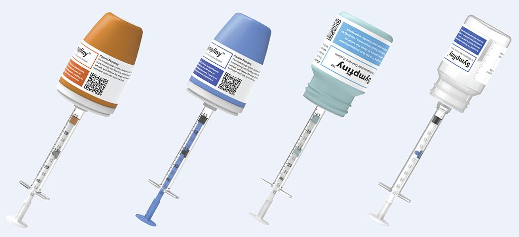 Sympfiny can be used in a wide variety of settings and by a diverse set of users. Sympfiny was designed with the entire supply chain in mind. The system’s bottle can be pre-filled or pharmacy filled. The internal valve and bottle cap design ensure the drug is protected through shipment, storage and use. The re-usable syringe comes in two sizes with both offering adjustable dose settings.